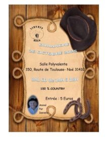 Le Dimanche 26 Octobre 2025, Après Midi Bal Country cd, de 14h00 à 18h00, chez *Liberty Road*, Salle Polyvalente, 150 Route de Toulouse, à Noé (31410), Haute Garonne.