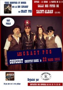 Le Samedi 22 Mars 2025, Bal Concert Country Rock animé par *Les Crazy Pug*, chez *Country