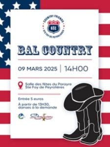 Le Dimanche 09 Mars 2025, Après Midi Bal Country à 14h00, Salle des Fetes du Parayre, à Ste Foy de Peyrolieres (31470), Haute Garonne.