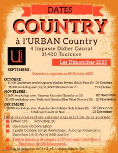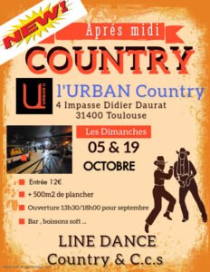 Le Dimanche 05 Octobre 2025, Après Midi Bal Country des *Urban Country*, de 13h00 à 18h00, sur 500 m² de Plancher,