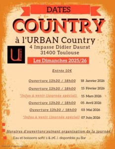 Le Dimanche 03 Mai 2026, Après Midi Country chez *Urban Country*, de 13h30 à 18h00, 4 Impasse Didier Daurat, à Toulouse (31), Haute Garonne.
