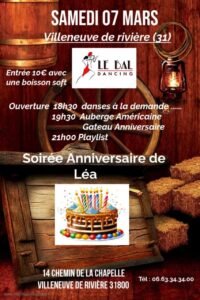 Le Samedi 07 Mars 2026, Soirée Country pour l’anniversaire de Léa,