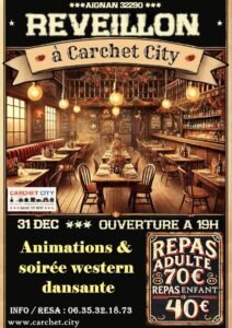 Le Mercredi 31 Décembre 2025, Soirée Réveillon à Carchet City, à 19h00, à Aignan (32290), Gers.
