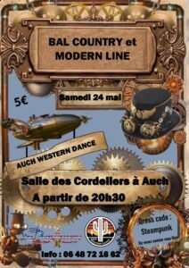 Le Samedi 24 Mai 2025, Bal Country et Modern Line chez *Auch Western Dance*, à 20h30, Salle des Cordellers, à Auch (32), Gers.