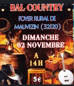 Le Dimanche 02 Novembre 2025, Après Midi Bal Country à 14h00, au Foyer Rural de Mauvezin (32120), Gers.