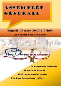 Le Samedi 15 Mars 2025, Soirée Line Dance Party à 21h00, chez *Line Dance Academy*, au Country Club de Mirande (32) Gers.