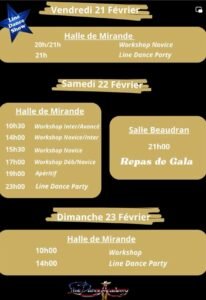 Du 21 au 23 Février 2025, Week End Line Dance Show, chez *Line Dance Academy*, avec Bals, Workshops, repas Spectacle, à Mirande (32) Gers.