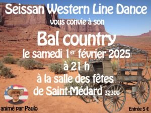 Le Samedi 1er Février 2025, Bal Country animé par *Paulo*, chez *Seissan Western Line Dance*, à 21h00, Salle des Fetes de St Médard (32300), Gers.