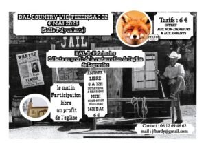 Le Dimanche 04 Mai 2025, Après Midi Bal Country du Patrimoine, à 14h00, Salle Polyvalente de Vic Fezensac (32) Gers.