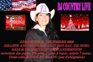 Le Dimanche 21 Décembre 2025, Après Midi Bal Country de Noel, avec DJ Country Live, chez *Heats And Flowers*,à 13h00,