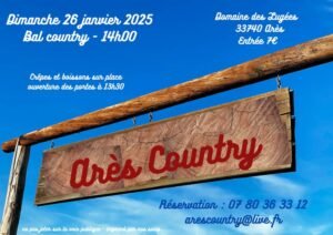 Le Dimanche 26 Janvier 2025, Après Midi Bal Country à 14h00, Chez *Arès Country*, Domaines des Lugées, à Arès (33740), Gironde.