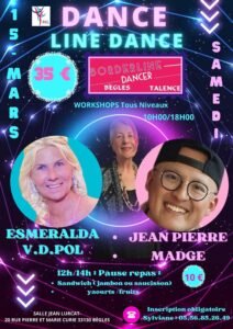 Le Samedi 15 Mars 2025, Journée Line Dance avec *Esmeralda VD Pol* et *JP Madge*,