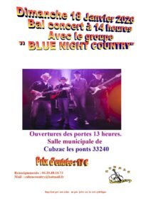 Le Dimanche 18 Janvier 2026, Après Midi Bal Concert Country des *Blue Night Country*, à 1