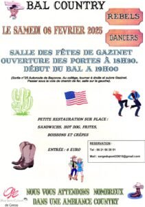Le Samedi 08 Février 2025, Bal Country chez *Rebels Dancers*, à 19h00, Salle des Fetes de Gazinet Cestas (33), Gironde.