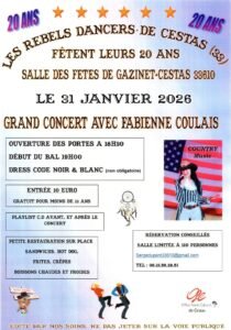 Accueil » Événements » (33) GAZINET CESTAS / SOIREE COUNTRY CONCERT LE 31.01.26.