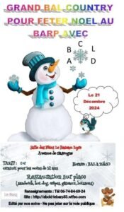 Le Samedi 21 Décembre 2024, Grand Bal Country de Noel , à 19h30,Salle des FEtes, Avenue de Cassogne, à Le Barp (33), Gironde.
