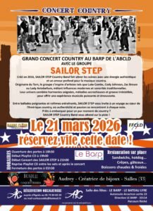 Le Samedi 21 Mars 2026, Bal Country Line Dance cd et Concert des *Sailor Step*, à Le Barp (33) , Gironde.