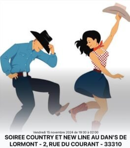 Le Vendredi 15 Novembre 2024, Soirée Country et New Line , de 19h30 à 02h00, au *Dan’s* , 02, rue du Courant, à Lormont (33310), Gironde.