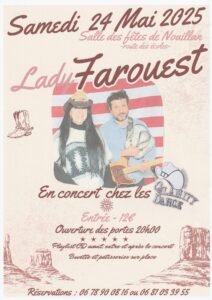 Le Samedi 24 Mai 2025, Soirée Country avec Concert de *Lady Farouest*, chez les *Calamity Dance*, à 20h00, Salle des Fetes , Route des Ecoles, à Noaillan (33), Gironde.
