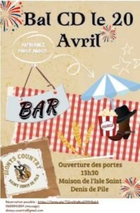 Le Dimanche 20 Avril 2025, Après Midi Bal Country chez *Dionys Country *,à 13h30, Maison de L’Isle, à St Denis de Pile (33910), Gironde.