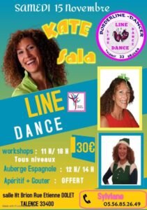 Le Samedi 15 Novembre 2025, Journée Line Dance avec *Kate Sala*, de 11h00 à 18h00, Salle Ht Brion, rue Etienne Dolet, à Talence (33400) , Gironde.
