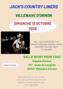 Le Dimanche 12 Octobre 2025, Après Midi Bal Country avec Concert de *Olivier Jacq*, à 15h00, Salle Sport pour tous, Espace d’ornon, 147 Route de