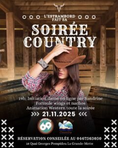 Le Vendredi 21 Novembre 2025, Soirée Country à 19h00, à L’Estrambord, 18 Quai Georges Pompidou, à La Grande Motte (34), Hérault.