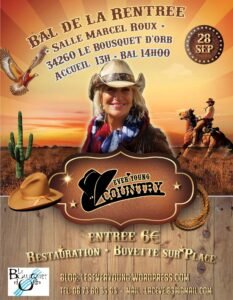 Le Dimanche 28 Septembre 2025, Après Midi Bal Country chez *Everyoung Country*, à 14h00, Salle Marcel Roux, à Le Bousquet D’Orb (34260), Hérault.