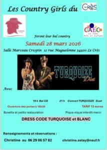 Accueil » Événements » (34) LE CRES / BAL COUNTRY ET CONCERT LE 28.03.26.