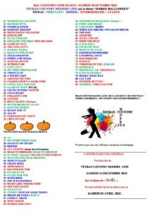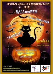 Le Samedi 26 Octobre 2024, Bal Country cd de *Teyran Country Modern Line*, animé par *Sandrine* pour Halloween, à 19h30, Salle des Fetes de Teyran (34) Hérault.