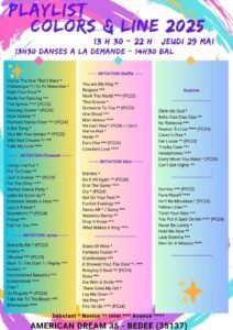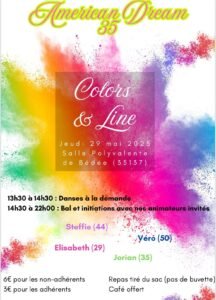 Le Jeudi 29 Mai 2025, Après Midi Line Dance de 13h30 à 22h00,chez *American Dream 35*, Salle Polyvalente de Bédée (35137), Ille et Vilaine.