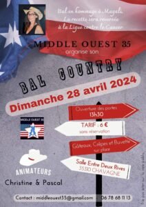Le Dimanche 28 Avril 2024, Après Midi Country Dance à 13h30, Salle Entre Deux Rives, à Chavagne (35310), Ille et Vilaine.