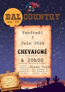 Le Vendredi 07 Juin 2024, Bal Country cd à 20h00, Salle Polyvalente de Chevaigné (35250), Ille et Vilaine.