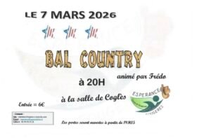 Le Samedi 07 Mars 2026, Bal Country animé par *Frédo*, à 20h00, Salle de Coglés (35460), Ille et Vilaine.
