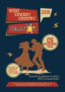 Le Vendredi 05 Décembre 2025, Bal Country des *West Cowboy Country*, à 20h00, pour le Téléthon, à La Gouesnière (35350), Ille et Vilaine.