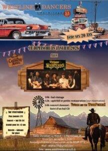 Le Dimanche 18 Janvier 2026, Journée Country music et Dance des *Westline Dancers*, à partir de 10h00 avec Bal Vintage, Apéro, Concert Dansant et Bal cd, Salle Christian Le Mao
