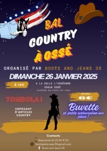 Le Dimanche 26 Janvier 2025, Après Midi Bal Country chez *Boots And Jeans 35*, à 14h00, Salle L’Osséenne, à Ossé (35410), Ille et Vilaine.