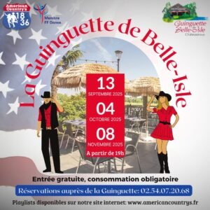 Le Samedi 04 Octobre 2025, Soirée Country chez *American Country’s*, à 19h00, Ginguette de Belle Isle, à Chateauroux (36), Indre.