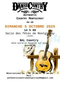 Le Dimanche 05 Octobre 2025, Après Midi Bal Country à 14h00, chez *Authentic Country *, Salle des Fetes de Montgivray (36400), Indre.