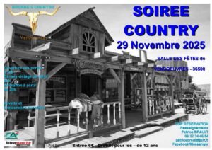 Le Samedi 29 Novembre 2025, Soirée Country à partir de 19h00, Salle des Fetes de Vendoeuvres (36500), Indre.