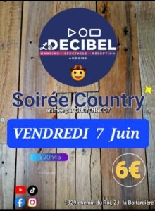 Le Vendredi 07 Juin 2024, Soirée Country , animée par *Cheyenne 37*, à 20h45, à Amboise (37), Indre et Loire.