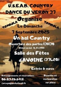 Le Dimanche 07 Septembre 2025, Après Midi Bal Country des *USEAB Country Dance du Veron*, de 14h00 à 19h00, Salle des Fetes D’Avoine (37420), Indre et Loire.