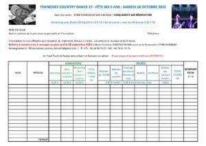 Le Samedi 18 Octobre 2025, Journée Country à partir de 13h00, chez *Tennessee Country Dance 37*, qui Fetera ses 05 ans, avec Workshop de *David Lecaillon* et Bal Concert animé par les *McKensie*, Salle des Loisirs de Chanceaux sur Choisille (37390), Indre et L