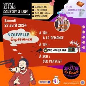 Le Samedi 27 Avril 2024, Soirée Country et Line à partir de 17h00, Centre de Vie Francois Mitterand, Allée des écoles, à Larcay (37270), Indre et Loire.