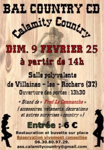 Le Dimanches 09 Février 2025, Après Midi Bal Country chez *Calamity Country*, à 14h00, Salle