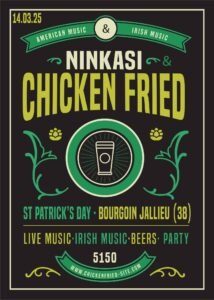Le Vendredi 14 Mars 2025, Soirée Country st Patrick’Day, avec Concert des *Chicken Fried*, 100% Irlandais ,