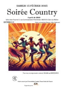 Accueil » Événements » (38) CLAIR DU RHONE / SOIREE COUNTRY LE 15.02.25.