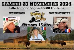 Le Samedi 23 Novembre 2024, Workshops et Soirée country Salle Edmond Vigne, à Fontaine (38600), Isère.