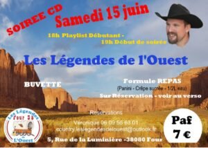 Le Samedi 15 Juin 2024, Soirée Country cd à 19h00, 05, rue de la Luminière, à Four (38080), Isère.