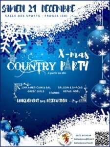 Le Samedi 21 Décembre 2024, Après Midi Country Party, chez *Belledonne Country Valley*, à partir de 15h00, Salle des Sports de Froges (38) Isère.